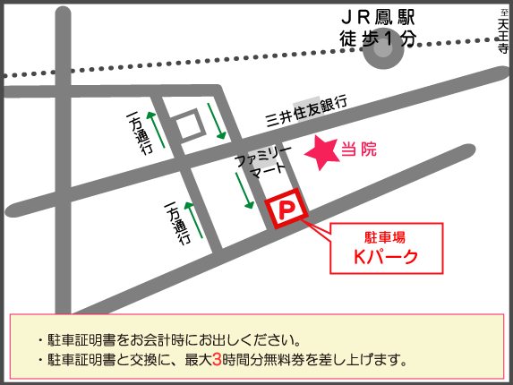 - 提携駐車場Kパークをご利用された方は、お会計時に駐車証明書と引き換えに最大3時間までの無料駐車券をお渡しいたします。