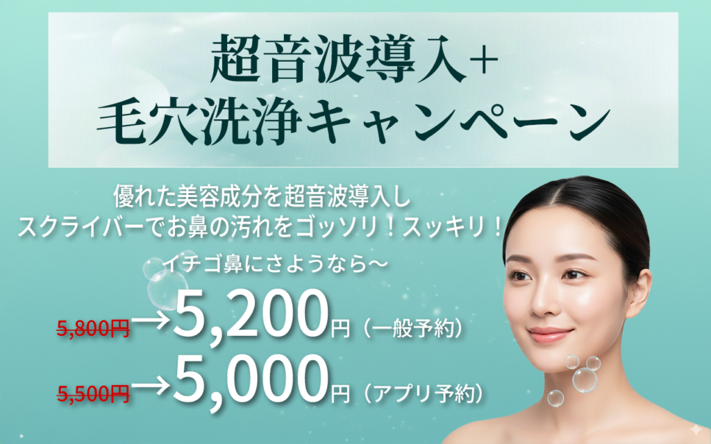 超音波導入+お鼻毛穴洗浄 キャンペーン