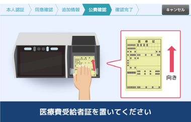 ・ 医療証をお持ちの方: 忘れずにお持ちいただき、保険証のあとに認証機へ入れてください。
