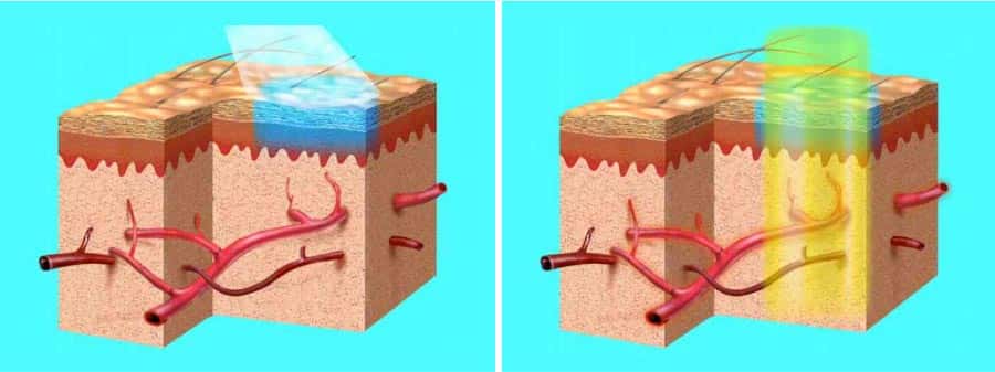 - この冷却のおかげで、レーザーの熱からお肌の表面(表皮)が守られ、痛みや肌への負担を最小限に抑えられます。